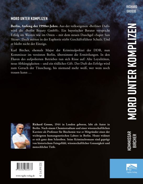 Mord unter Komplizen ist ein spannungsgeladener Gesellschaftsroman über die Jahre des Übergangs, die Fallstricke der Transformation und das moralische Vakuum zwischen Systemwechsel und Selbstvermarktung. Richard Grosse zeichnet ein feines Porträt einer Zeit, in der zwischen Euphorie und Umbruch alte Sicherheiten verschwinden – und neue Risiken wachsen.