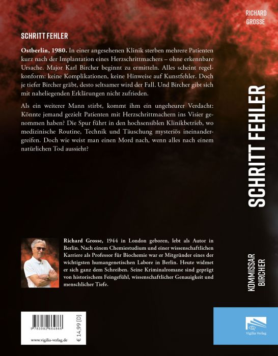 Schrittfehler erzählt von den Grauzonen zwischen Technik und Verantwortung, von einem System, das Fehler nicht eingestehen darf – und von einem Ermittler, der an der Schwelle zwischen Pflicht und Wahrheit steht. Richard Grosse zeichnet ein präzises Bild des medizinischen Alltags in der späten DDR – und öffnet den Blick auf Fragen, die weit über die damalige Zeit hinausweisen: Was passiert, wenn Technologie zur Waffe wird? Und wer schützt uns, wenn die Beweislage versagt?