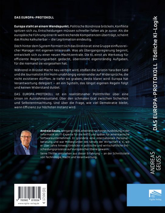Verschlagwortung/Keywords: Thriller, Politthriller, Europa, Künstliche Intelligenz, Roman über digitale Macht, KI Machtübernahme, Politthriller Europa, Buch über Demokratie und KI, Roman über politische Krisen, Zukunft Europas Roman, Buch über Macht und Technologie, KI und Demokratie